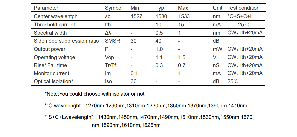1530nm DFB CWDM 激光器组件
